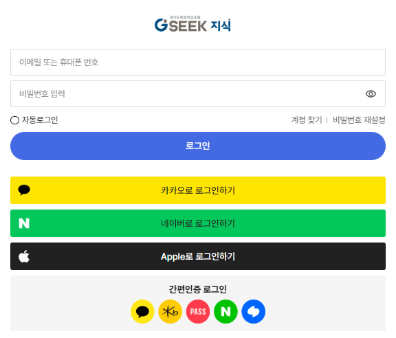 제일 먼저 경기도 지식 포털사이트에 로그인을 하세요.(아래를 클릭하세요)