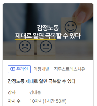 1) 감정노동 제대로 알면 극복 할 수 있다. 강의시간 10차시(1시간50분)